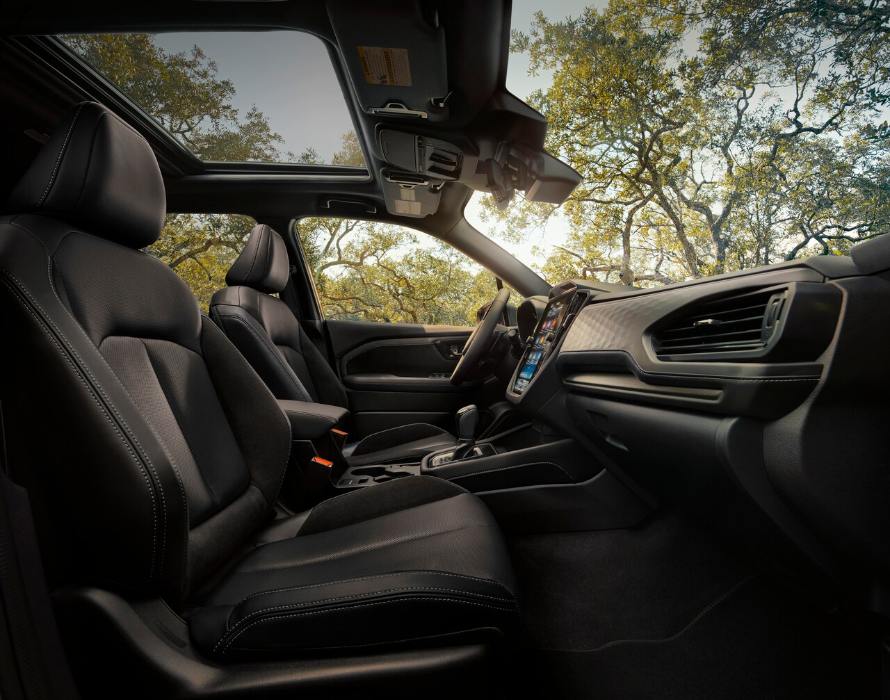 With seating for five, the Subaru Forester offers cloth or leatherette interior material, depending on your chosen model. You'll find ample room for you and your passenger and easy ways to store cargo with a large cargo area behind the rear seats or up to 74.2 cubic feet of space when you fold down the rear seats. These can all be accessed by a power liftgate, as well.